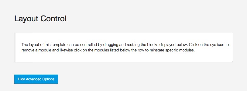 The layout tool is inspired by the T3 Framework's layout tool with some key modifications in workflow. We have simplified the behaviour for the template across different screen sizes by adding simple toggles for either hiding or stacking modules at various screen sizes.